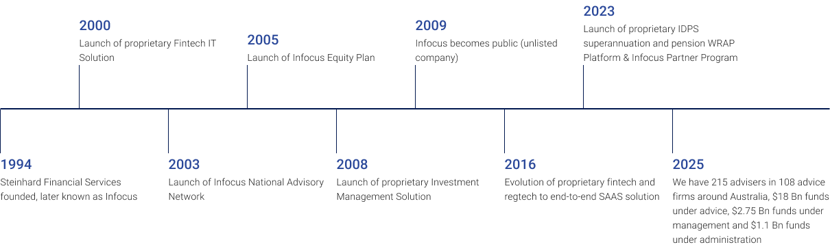 Founded in 1994 by Darren and Stephanie Steinhardt, Infocus started as a single practice and has grown into one of Australia’s most respected national financial advisory firms.